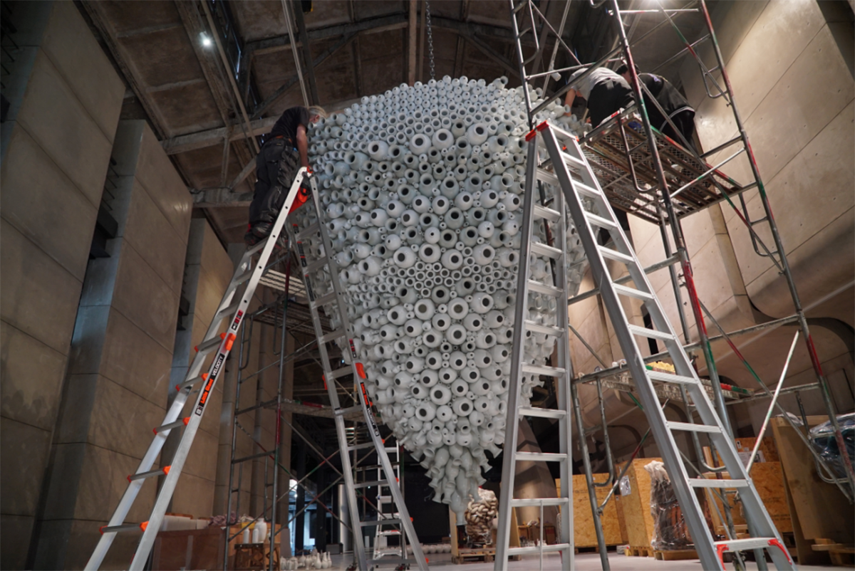 2023年,這位生長在極寒之地的陶藝家來到景德鎮(zhèn),用動輒幾千、甚至上萬件的瓷盤、瓷瓶進行裝置藝術(shù)的創(chuàng)作,這種強大的體力勞動,是他與材料互相成就的美好體驗,他堅持自己完成,身形削瘦的他,將自己隱藏于作品中,充滿力量,和態(tài)度。