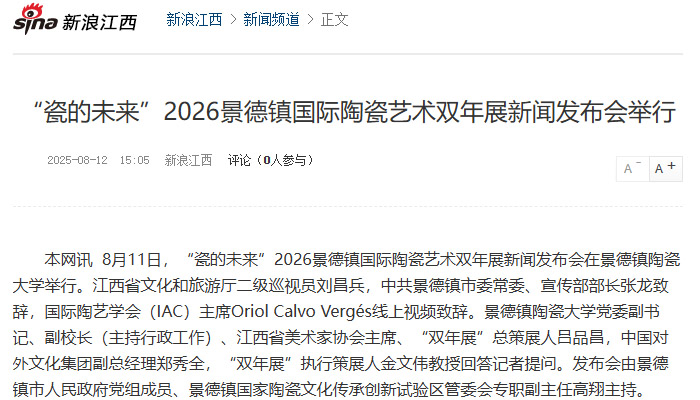【新浪江西】“瓷的未來(lái)”2026景德鎮(zhèn)國(guó)際陶瓷藝術(shù)雙年展新聞發(fā)布會(huì)舉行
